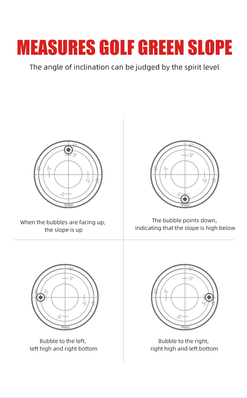 - Slope Measurement: The integrated level meter allows you to accurately assess the slope of the green, allowing you to make better putting decisions.